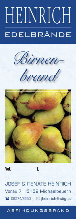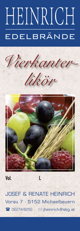 Die Qualität unserer Produkte liegt uns sehr am Herzen. Wir stellen diese Edelbrände aus reinem Idealismus und Freude an dieser Arbeit her. Und das kennt man am Geschmack. Überzeugen sie sich selbst vom Geschmack der Edelbrände aus dem Hof Heinrich.